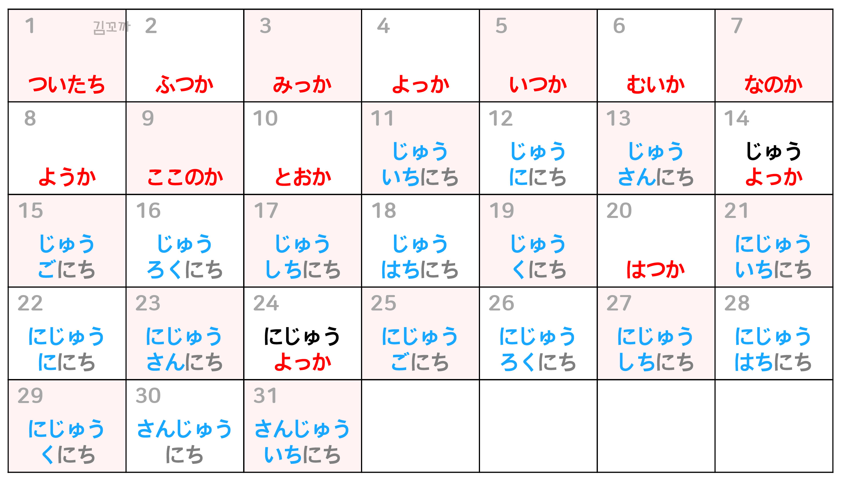 그걸 응용해서 일본어로 날짜 말하는 법을