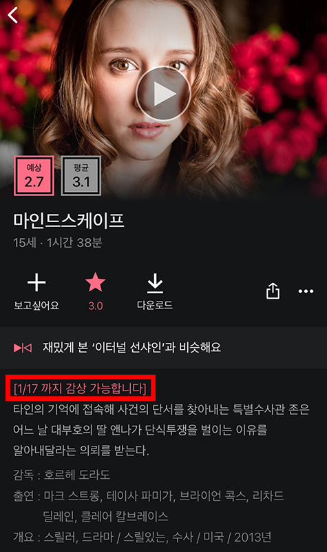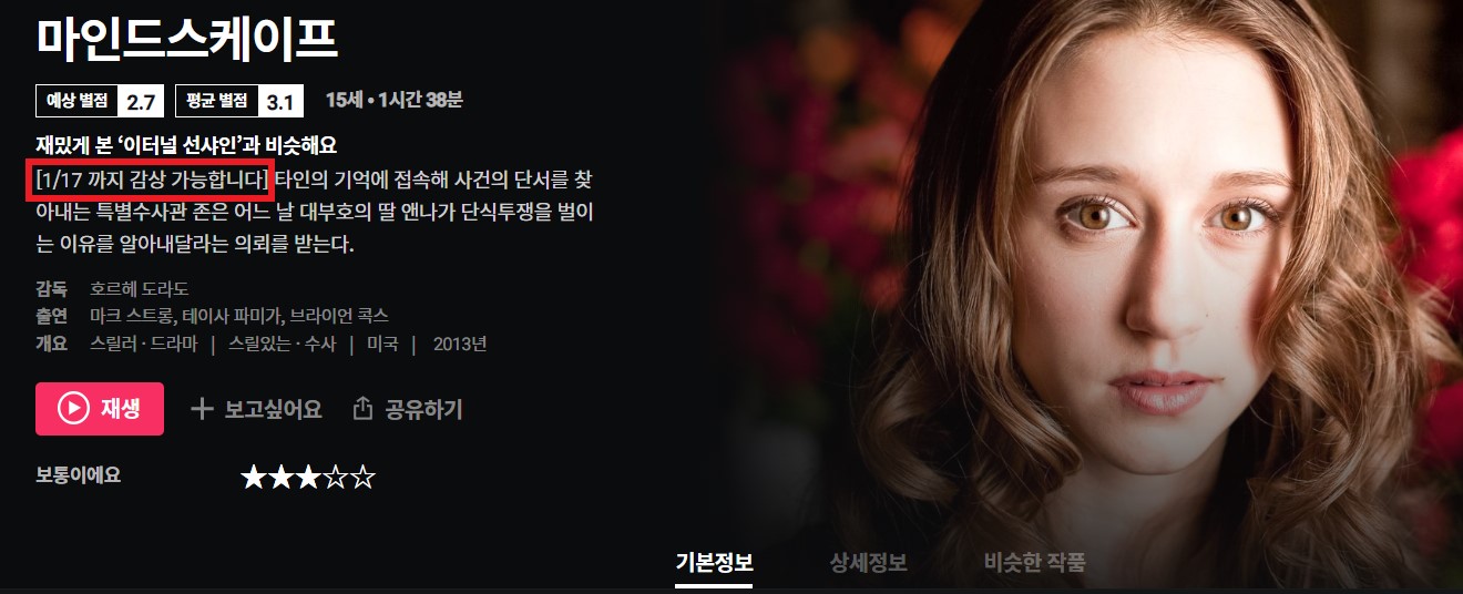 아니면 보고싶은 영화나 드라마에서 상세 설명을 보면