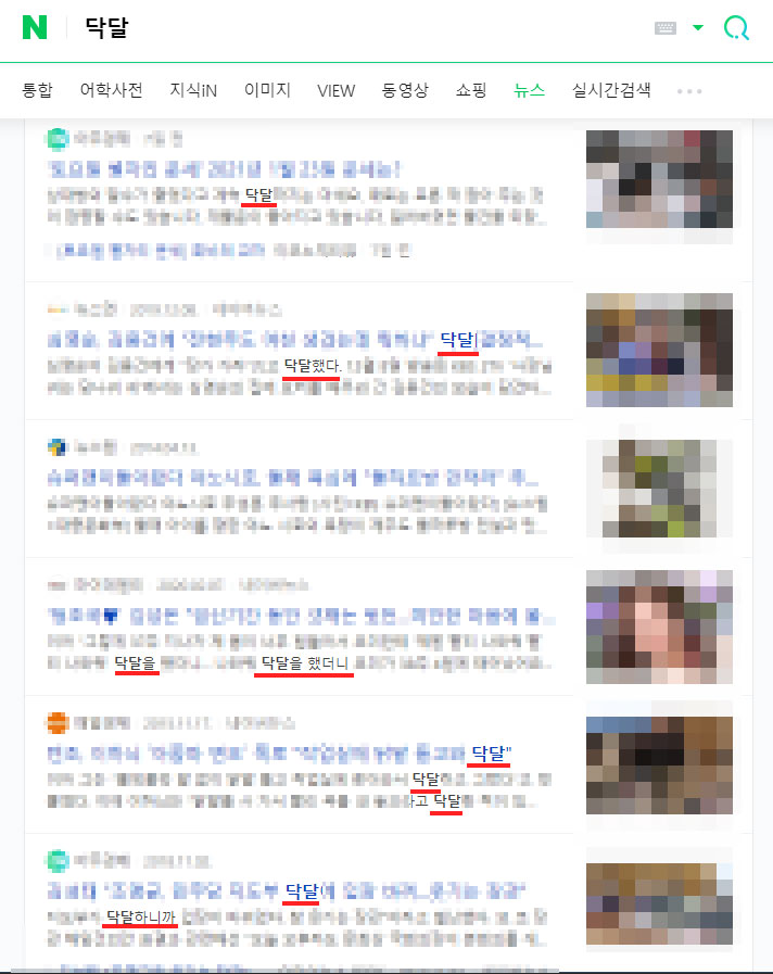 네이버에서 '닥달'이라고 검색해서