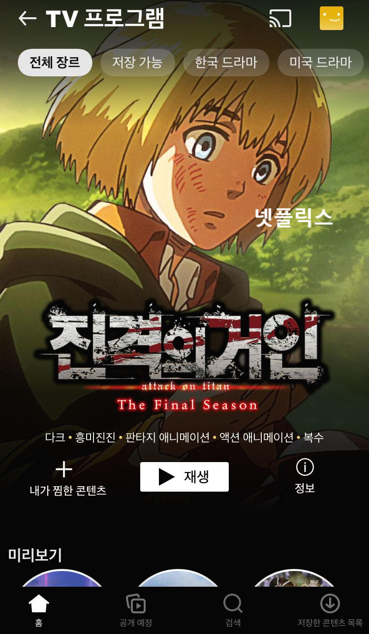 TV드라마를 선택하면 이런 화면이 나옵니다.