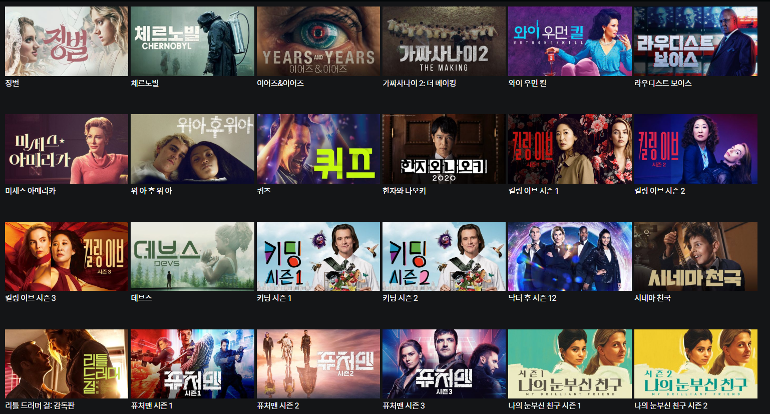 아니... 왓챠에 엘리멘트리도 있고, 킬링 이브도 있고,