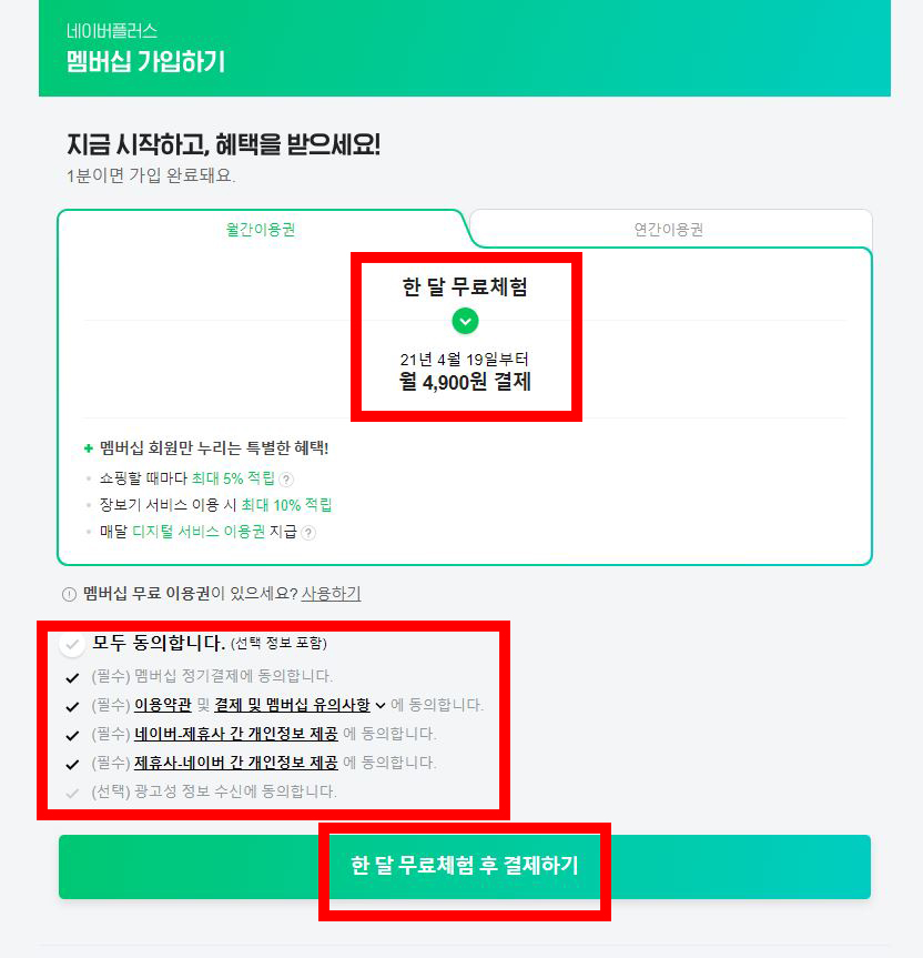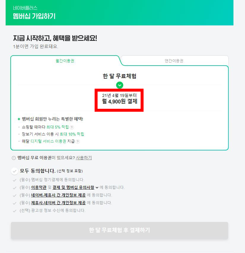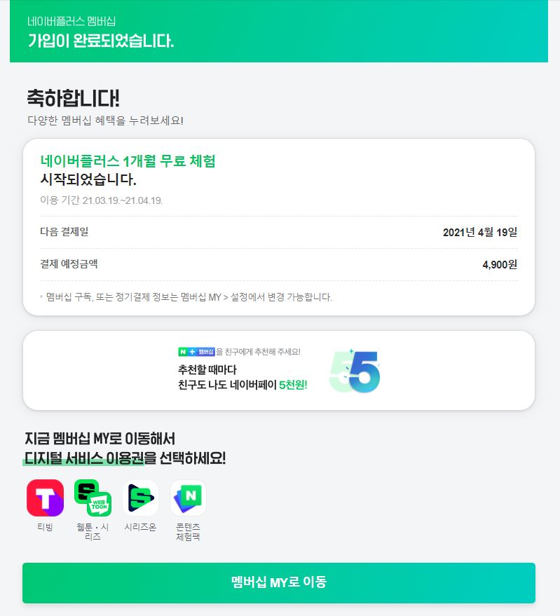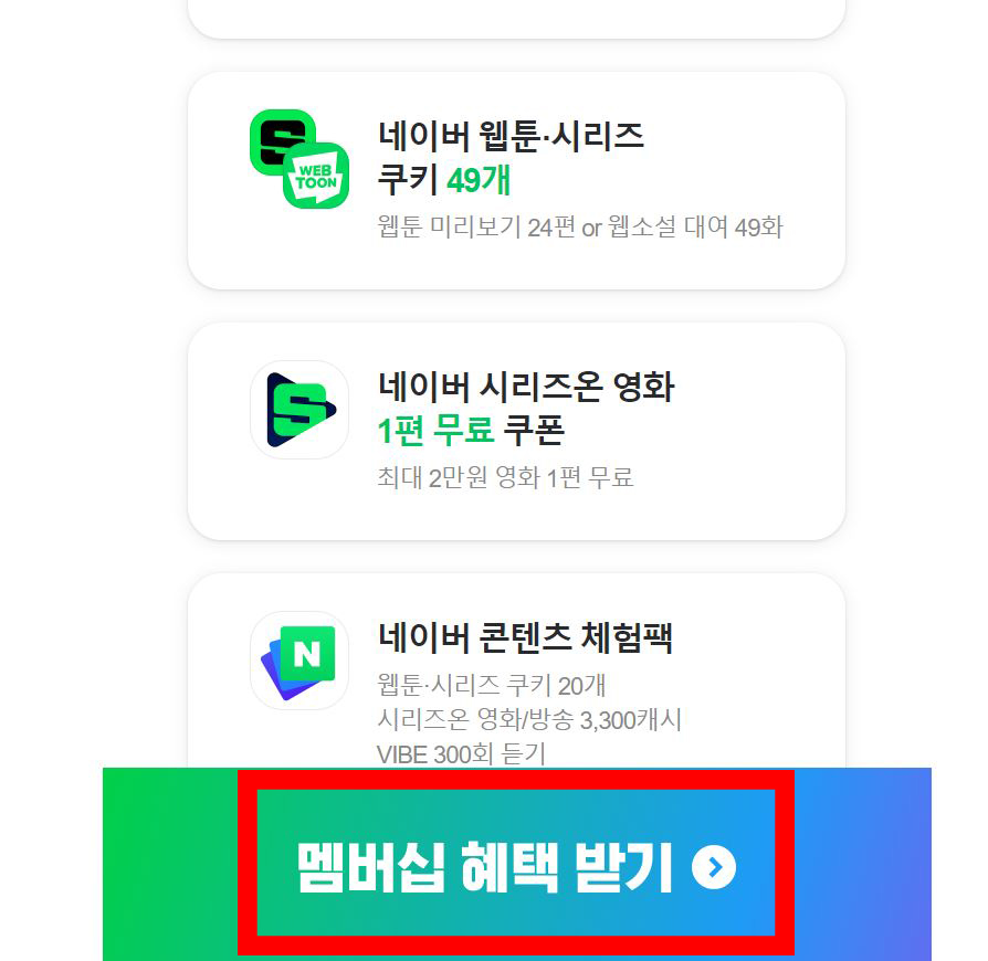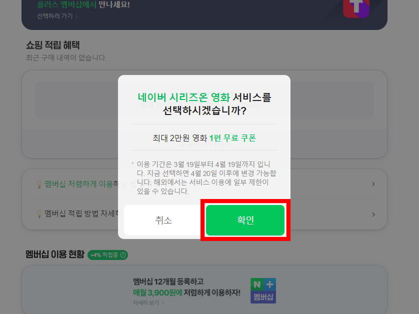 네이버 플러스 멤버십을 처음 쓰는 계정
