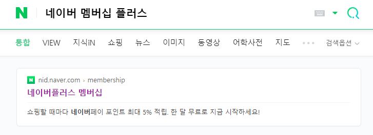 전 잘못해서 '네이버 멤버십 플러스' 라고 쳤는데