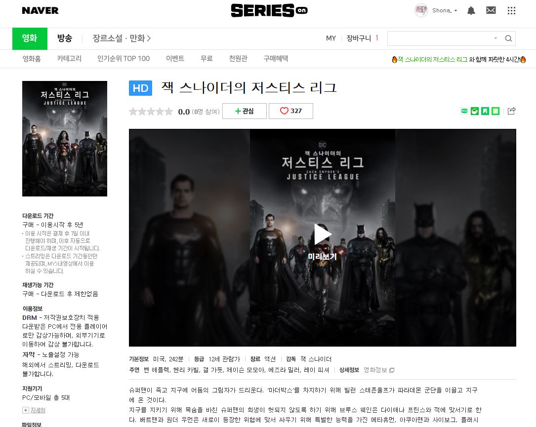 지난 포스팅에서 네이버 플러스 멤버십 첫 가입 혜택을 이용해서 2만원짜리 영화를 무료로 보는 방법에 대해서 알려드렸는데요. 전 그 무료 쿠폰으로 「잭 스나이더의 저스티스 리그」를 봤습