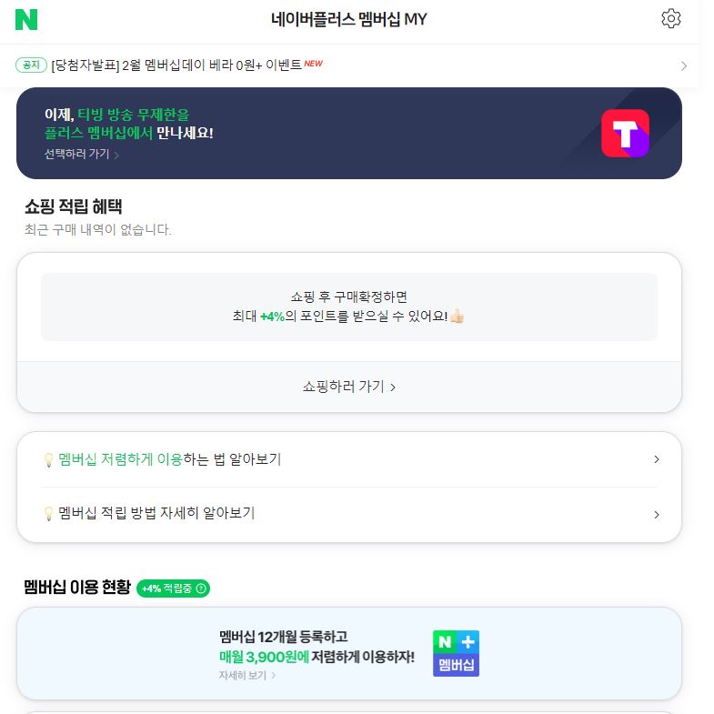 우선 네이버에서 "네이버 플러스 멤버십"을