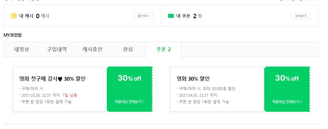 영화 첫 구매 감사 쿠폰을 주더라구요??