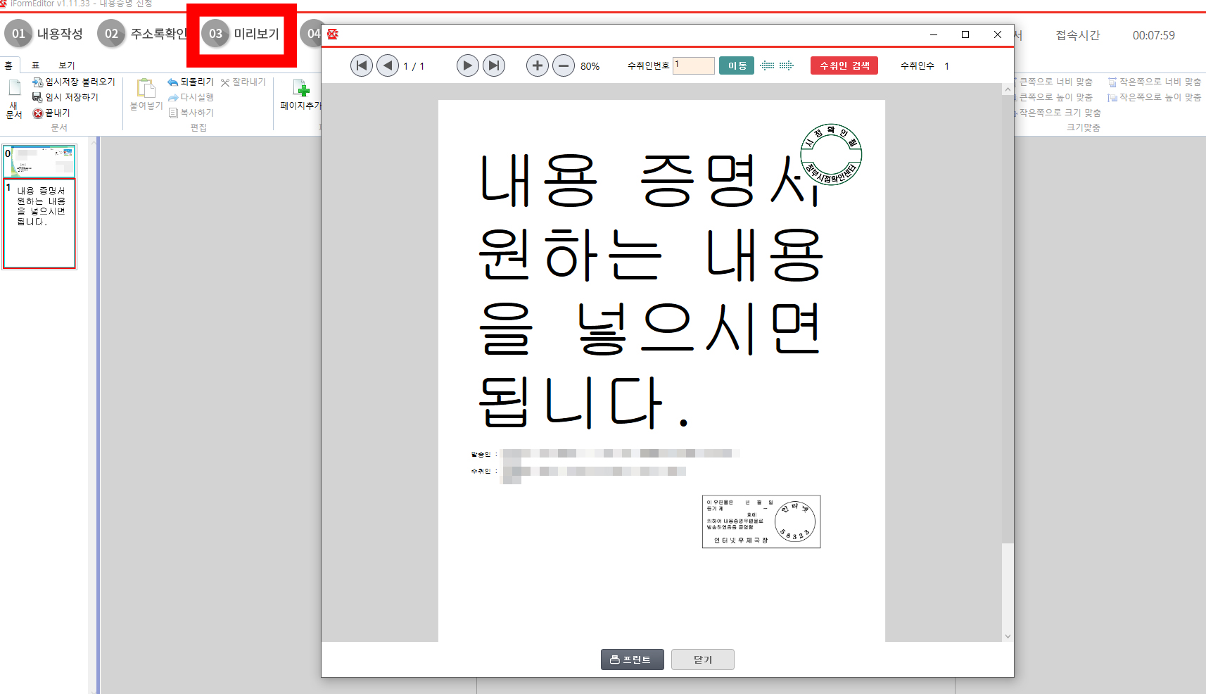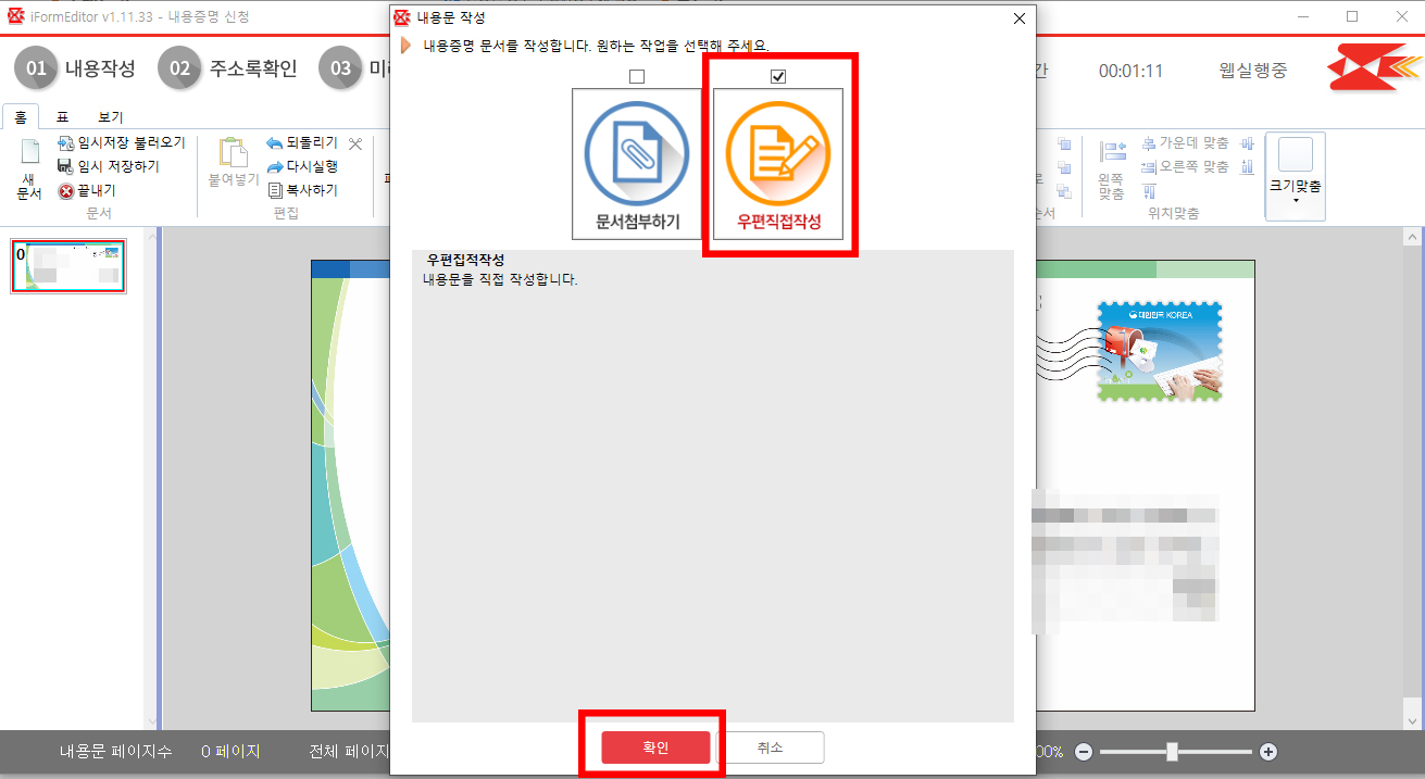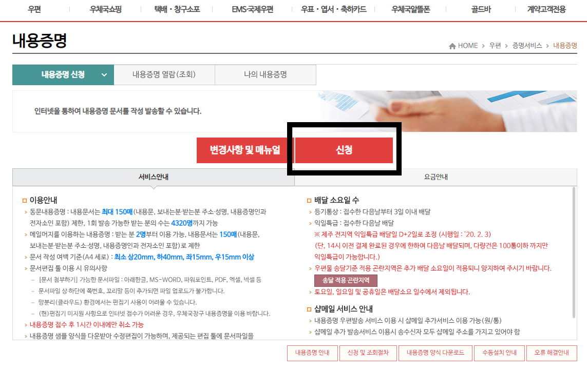 그러면 내용증명 메인화면으로 다시 돌아가서