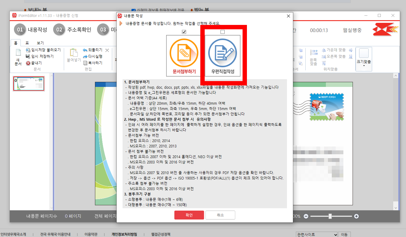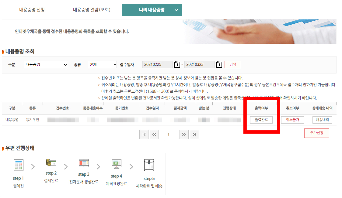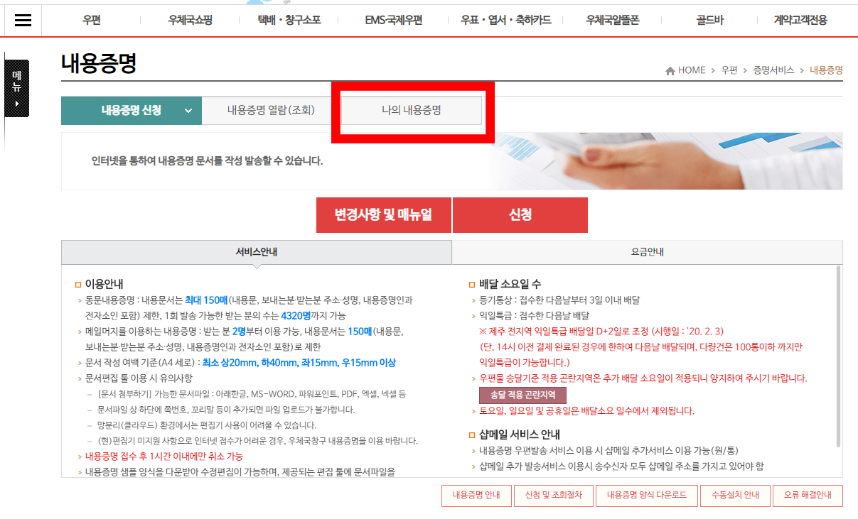 인터넷 내용 증명은 출력도 우체국에서 해주는 거라서